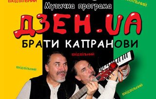 Дзен.ua – це трохи спів, трохи речитатив, усе під кобзу і дудку. Абсолютно ново, на чаклунські вірші одного з найкращих поетів сучасності Сергія Татчина. Татчин - це справжня інтернет-легенда, Останній з Мужикан, гуру Digital-романтизму і прочая і прочая. Брати Капранови вже кілька років експериментують із віршами Татчина у новому стилі кобза-реп. Там буде і кобза-блюз, кобза-реґґі, кобза-рок, кобза-вальс, кобза-боса-нова. «Вірші Татчина – самі по собі вже є музикою. І нам залишилося тільки додати до них кілька нот», – кажуть Брати. Сподобається вам чи ні – не знаємо, але гарантуємо: такого ви точно ніколи не чули. Захід відбудеться 10 жовтня о 20:00 у караоке-кафе “Jamaica”, ТЦ “12”, 3 поверх (вул. Київська, 10).