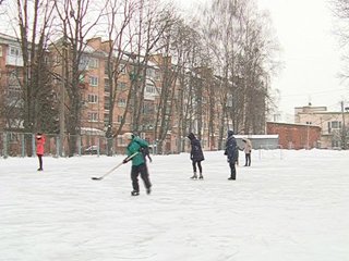 Керівник підліткового клубу "Олімпія" Володимир Мосьпан особисто опікується катком. Допомагає діткам зашнурувати ковзани та дає професійні поради. А коли приходять хлопчаки, тоді разом з ними і в хокей грає.