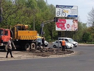 Ремонтні роботи перехрестя вулиць Данила Галицького та Київської завершили. Тепер ремонтують прилеглі тротуари.