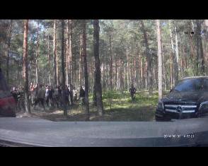 З відео, записаного на реєстратор однієї з автівок, на якій приїхали озброєні люди видно, під час стрілянини на місці були правоохоронці.