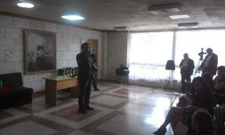 Представники влади та силових структур на відкриття виставки нагороди та грамоти. Для голови рівненської облради Михайла Кириллова, якому сьогодні виповнюється 34 роки працівники ЗМІ заспівали "з днем народження тебе".