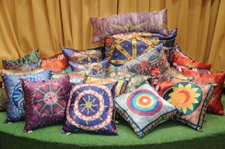 Це яскрава і приємна підбірка декоративних шовкових подушок, наповнена барвами і прадавніми символами в авторській інтерпретації художниці. Раніше прикрашала виставки Рудницької в Україні та світі. А ще думочки Анжеліка дарувала друзям, тому їх часто можна зустріти в оселях відомих українців. Нині ж кожен може зробити собі приємність - прикрасити свій дім гарними подушечками і допомогти пораненим військовим.