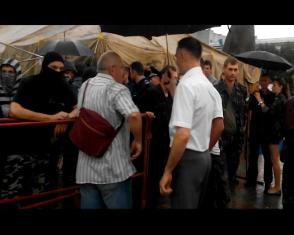 До переговорів підготувалися - залучивши і молодиків у балаклавах, і представників кількох громадських організацій. Обійшлося без бійки, але не без суперечки. Активісти переконували, що великий намет нині потрібніший у зоні АТО. А для майдану цілком досить і маленького намету, який стояв там раніше.