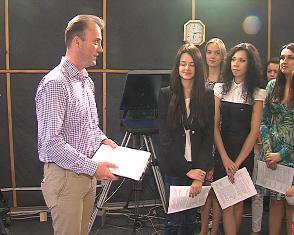 У сімнадцяти випускників Школи універсального журналіста - особливий день: у студії Першого місцевого вони знайомляться з роботою телеканалу і пробують себе в ролі ведучих.