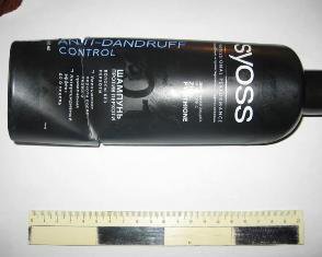 Рідина світло – коричневого кольору була залита у шприц і замаскована всередині пляшки із шампунем.