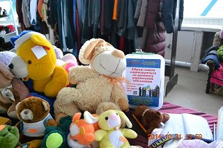 Все, що приходить на ярмарок, майже відразу реалізується. Тут можна недорого придбати різний одяг, взуття, картини, CD-диски, книги, прикраси, або зроблений дітьми хенд-мейд. Також є можливість долучитися до плетіння нової маскувальної сітки. Попередню сітку, яку нещодавно завершили, вже передано до Фонду «Руєвит».