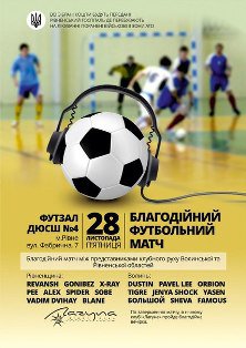Благодійний матч між представниками клубного руху Волинської та Рівне нської області відбудеться 28 листопада у Рівному.