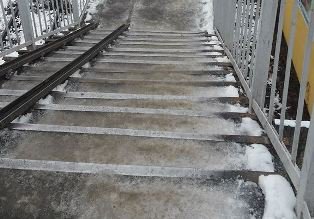 Ті, хто ходить через пішохідний міст з району, який у народі називається «Негри», вже кілька днів абсолютно не можуть пересуватися цим самим мостом. На фото ви можете побачити, як сьогодні зранку виглядав міст. Причому це після того, як його «почистив» робітник, який і сам спускався з мосту, міцно тримаючись за поручні.