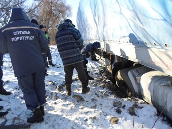 За вказаною адресою негайно виїхало чергове відділення бійців Держслужби з НС на спецавтомобілі підвищеної прохідності КрАЗ та оперативно-координаційний центр обласного управління ДСНС. За допомогою тросу рятувальники відбуксирували вантажівку на проїжджу частину дороги, після чого водій попрямував по власному маршруту.
