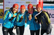 Збірна України блискуче завершила змагання. Наші дівчата у складі Юлії Джими, Валі Семеренко, Наталії Бурдиги та Ірини Вавринець виграли гонку.