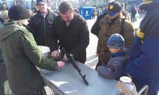 Волонтери у центрі міста провели акцію по збору коштів на допомогу армії.