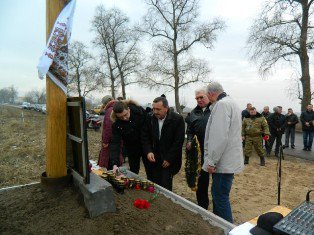 Настоятель місцевої церкви освятив пам’ятний хрест і прочитав молитву за спокій душ українських героїв.