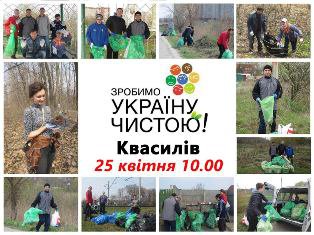 Нагадаємо, минулого року акція «Зробимо Україну чистою!» відбувалася в Квасилові 12 квітня. Тоді її учасники долучилися до встановлення всеукраїнського рекорду з найбільшої кількості сміття, зібраного за одну секунду в Україні.