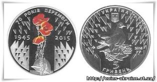 На монеті зображене дерево роду, на якому в гнізді на гілці калини сидить птах. З іншого боку - солдатська каска і мак.