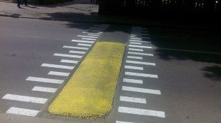 Так, на вул. Олени Теліги розфарбували в яскраві кольори півтора асфальтові бугри з трьох.