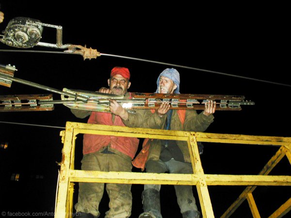 Ніч 17-18 травня 2005 року. Монтаж контактного дроту на повітряному перетинанні