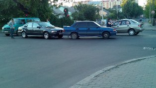 - Вчора відбулася аварія на перехресті біля супермаркету "Дисконт". За словами очевидців, синя LADA врізалася в сріблястий Lanos в задній правий бік, яку розвернуло. А потім врізався чорний Bmw, який їхав позаду синьої лади. Постраждалих людей немає. Подія відбулася приблизно 20:35, - йдеться у повідомленні.