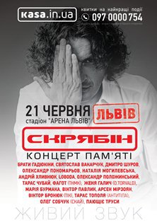 Нагадаємо, 2 лютого цього року в автокатастрофі трагічно загинув лідер українського гурту “Скрябін” Андрій Кузьменко. На чисельні прохання друзів Кузьми, та за згодою його сім’ї, 20 травня 2015 року в столичному Палаці Спорту відбувся великий концерт – триб’ют Пам’яті Кузьми Скрябіна. Зважаючи на важливість Львівщини та Львова у житті Кузьми і вплив «малої батьківщини» співака на його формування як особистості, великий концерт пам’яті відбудеться тепер ще й на найбільшому майданчику міста – стадіоні «Арена Львів».