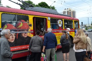 Рятувальники використали наочну навчальну продукцію та інформаційно-довідкові матеріали, як один з пріоритетних напрямків для підвищення рівня свідомості громадян в питаннях цивільного захисту. Обладнаний як консультаційний пункт найпопулярніший засіб громадського транспорту обласного центру допоможе співробітникам Держслужби з НС у справі запобігання виникненню надзвичайних ситуацій та навчання населення діям у їх випадках. Крім того, номер Служби порятунку «101» завжди буде перед очима у жителів та гостей обласного центру».