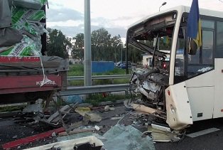 Унаслідок ДТП 29-річний пасажир автобуса загинув на місці, ще 8 осіб постраждали, двоє з них госпіталізовані.