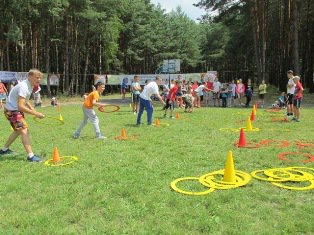 Для понад трьох сотень дітей, які відпочивають у таборі, організатори підготували дистанції спортивних естафет та все, що потрібно для змагань у індивідуальних конкурсах.