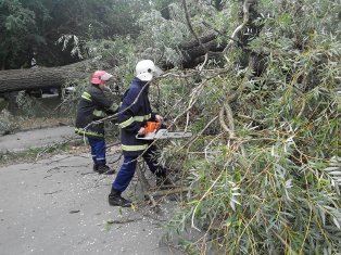 За допомогою аварійно-рятувального інструменту співробітники Держслужби з НС оперативно порізали повалене дерево та звільнили проїжджу частину.