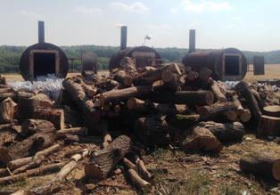 Без одержання належних дозвільних документів, зокрема, згідно вимог законодавства з питань пожежної та екологічної безпеки, він організував виробництво деревного вугілля шляхом спалювання деревини твердих порід у переобладнаних для цього металевих бочках.