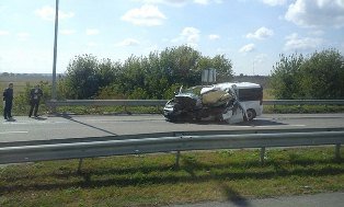 Як припускають очевидці аварії у групі Типове Рівне , водій буса в'їхав під гружонний прицеп Камаза.