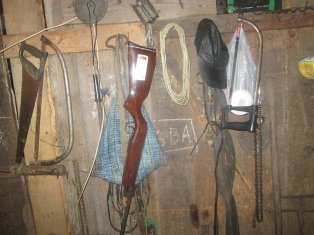 У підсобному приміщенні міліціонери виявили саморобну вогнепальну зброю, пневматичну рушницю, арбалет, 50 патронів та вибуховий пристрій.