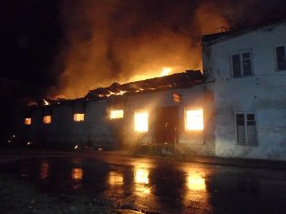 Коли рятувальники проводили бойове розгортання сил та засобів для гасіння, сталося обрушення охоплених вогнем дерев’яних конструкцій перекриття будівлі ритуальних послуг – потужні балки проламали підлогу та опинилися у підвалі глибиною до 5 метрів. Рятувальники подали на гасіння палаючої будівлі та захист лікувального закладу три водяні стволи. Через сильне задимлення та високу температуру вогнеборцям довелося працювати в апаратах захисту органів дихання і зору. Окрім того, роботу працівників ДСНС ускладнювало відсутність поблизу місця пожежі вододжерел – щоб поновити запас води в пожежних автоцистернах доводилося їздити за понад 1 кілометр. Через це на допомогу було викликано ще одне відділення вогнеборців з пожежно-рятувальної частини аварійно-рятувального загону обласного центру. Загалом на боротьбу з вогнем було залучено майже 20 рятувальників та 4 одиниці техніки.