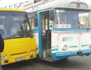 В обідню пору на вулиці Соборній у Рівному зіткнулися тролейбус та маршрутне таксі.