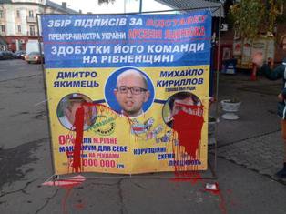 Упродовж проведення акції студенти зазнавали грубість та брутальні напади зі сторони прихильників Яценюка та його команди на Рівне нщині – Кириллова та Якимця. Знизу наведені фото, які свідчать про неадекватність прихильників даних політиків. Окрім того, на сторінці журналіста телеканалу «ZIK» Анни Махно у «Фейсбуці» є відео того, як бандити в балаклавах напали на намет, поламали його та погрузили у бус, щоб відвезти у невідомому напрямку. Про усі факти подані заяви до міліції, яка поки що мовчить і бездіє.