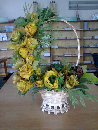 Клубівці, зібравшись біля бібліотеки, прогулялися «Лебединкою» та зібрали багато опалого, але ще «живого» листя: зеленого, коричневого, багряного, жовтого. Повернувшись у відділ інформації та документів виробничої тематики та, зігрівшись гарячим чаєм, почали виробляти троянди.