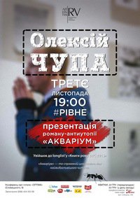 Український поет та письменник, засновник Донецького слему, на сьогоднішній час є досить актуальними для пересічного українця своїми творами. Нагадаємо, що цього року Олексій Чупа вже відвідував Рівне , презентуючи свою книгу під назвою "Казки мого бомбосховища”.