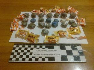 «В середині цукерок «Капрі» було виявлено двадцять один пакунок з речовиною зеленого кольору рослинного походження ззовні схожою на наркотичну та один пакунок з порошкоподібною речовиною білого кольору невідомого походження», - розповідає начальник установи Юрій Луцук.