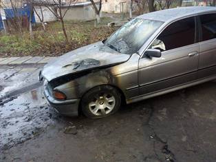 Вогнем знищено капот, ліве крило, електромережа відсіку двигуна, пошкоджено ліве переднє колесо легкового автомобіля.