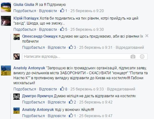 Така ідея викликала неабиякий резонанс. Деякі рівняни підтримали ініціативу та висловили власну думку з приводу того, аби заборонити виступ артистів у Рівному: