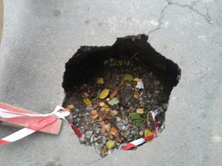 Внаслідок ями земля просіла і в інших місцях вулиці.