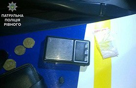 В 31-річного мешканця Рівного патрульні виявили пакети з невідомою речовиною білого кольору, пакетики для фасування, елекронні ваги та два камінці, ззовні схожі на сирець бурштину.