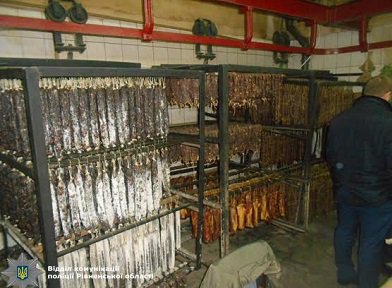 У ході проведеного 21 грудня обшуку на території приватного підприємства поліцейські спільно із працівниками санепідемстанції виявили та вилучили спеції та інгредієнти різного виду, готову м’ясну продукцію загальною вагою тонна 150 кілограмів та майже тисячу 400 одиниць сирої м’ясопродукції.