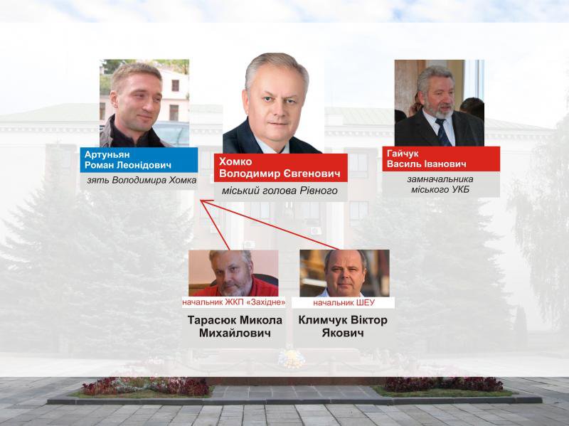 Одним із засновників кооперативу, за інформацією «Рівне вечірнє», його керівником та ліквідатором є заступник начальника міського управління капітального будівництва Василь Гайчук. А він, на хвилинку, підлеглий тестя Романа, міського голови Володимира Хомка.