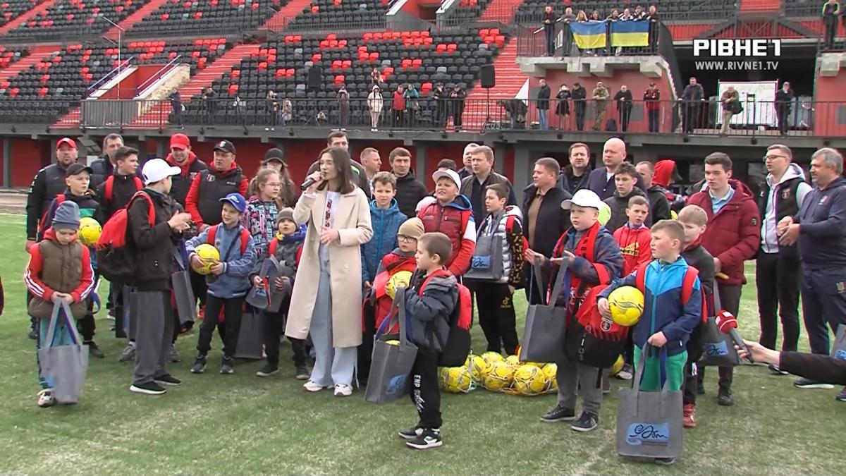 Діти отримали подарунки, пограли та поспілкувалися із футболістам. А під завершення заходу разом заспівали.