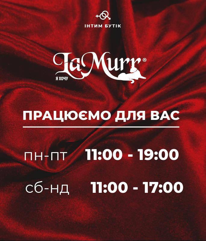 «LaMurr» - це магазин високої сексуальної культури, де Вас проконсультують професійні та тактовні продавці. Конфіденційність Вашого вибору гарантована, тому можете не хвилюватися, що хтось дізнається про Ваші таємні бажання. Нехай це залишиться між Вами і Вашою другою половинкою.