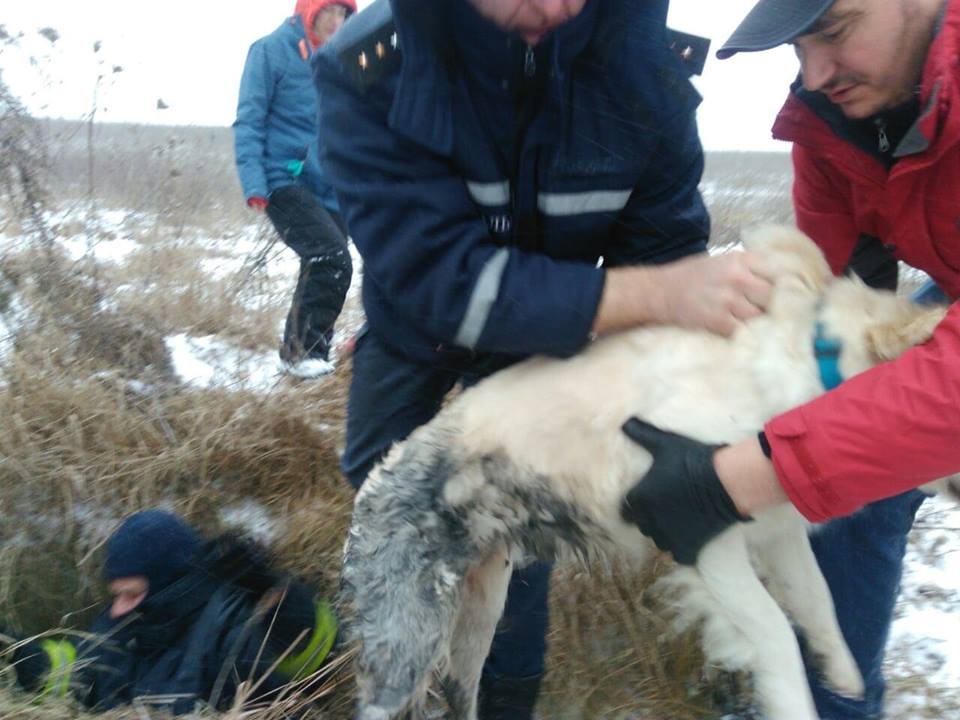 Сьогодні зранку, у полі неподалік вулиці Фабричної в п’ятиметровий колектор впала собака.