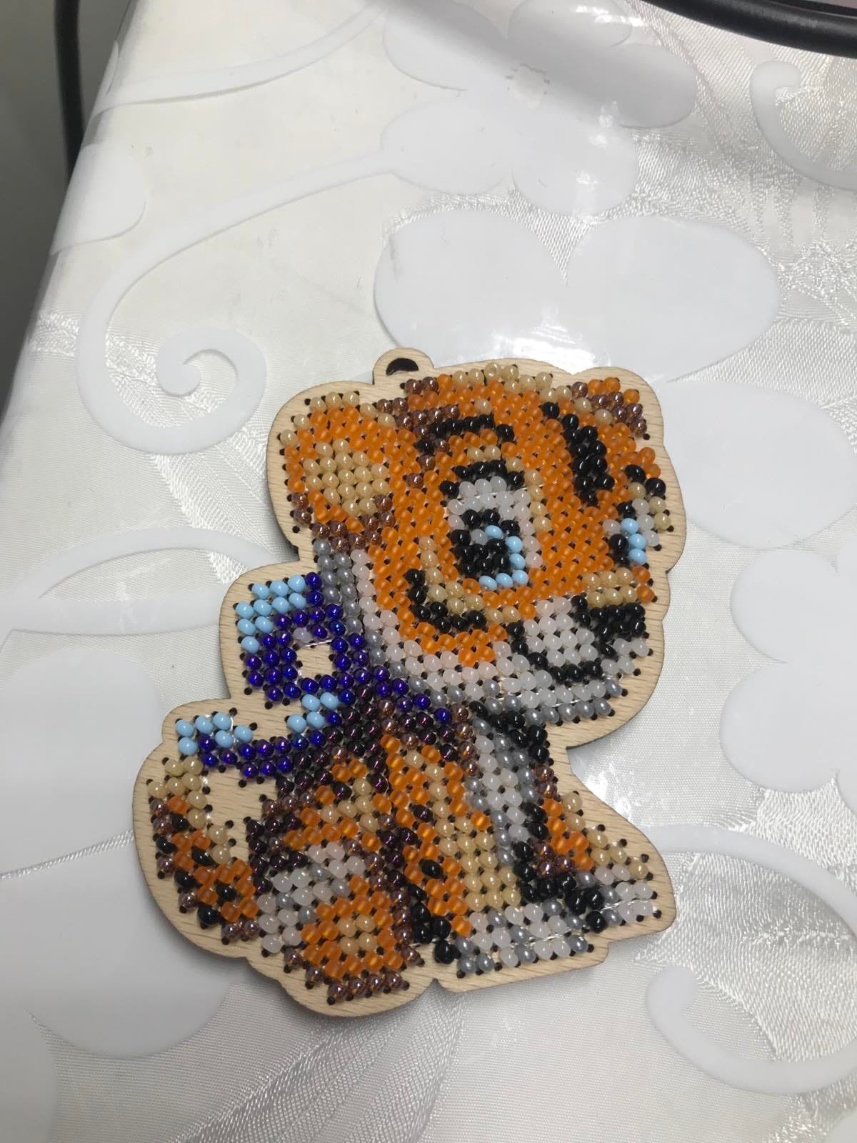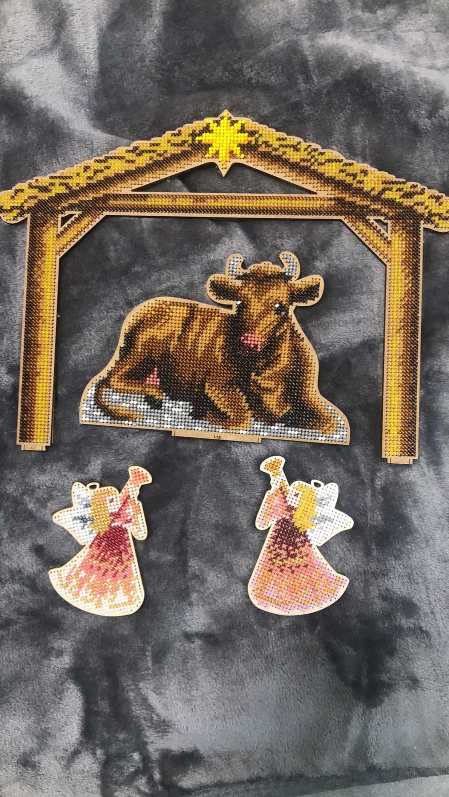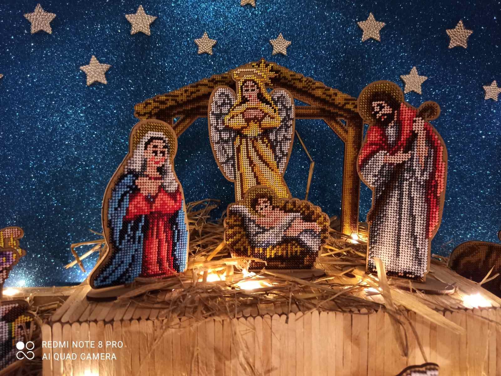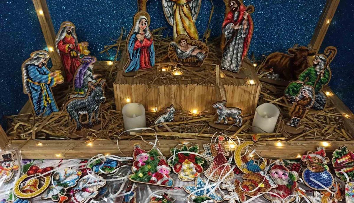 Усі елементи вертепу вишиті бісером на деревяних основах.