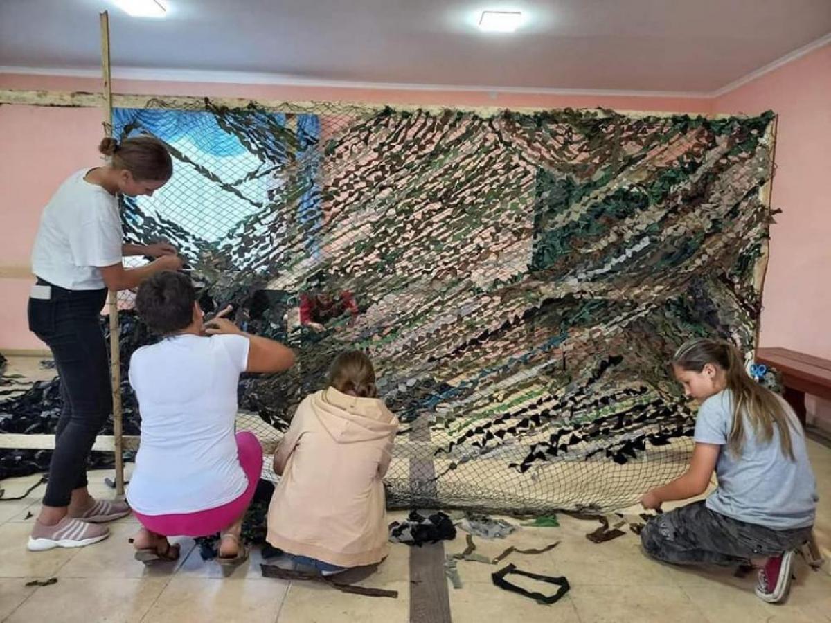 У Соснівському будинку культури організували свій волонтерський центр. Плести маскувальні сітки дорослим тут активно допомагає місцева молодь і навіть діти.