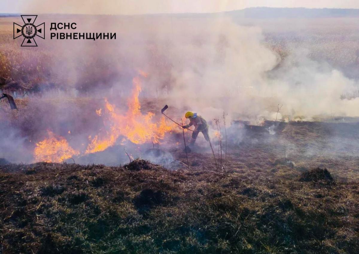22 березня о 12:49 в с. Калинівка, Рівненського району. Загоряння сухої трави на площі 1 га.