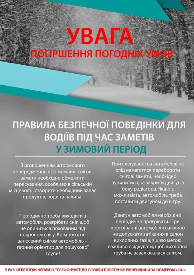 Рятувальники закликають громадян бути обережними. У випадках надзвичайних подій пов'язаних із негодою телефонуйте на цілодобові номери Служби порятунку області "101" або 112".